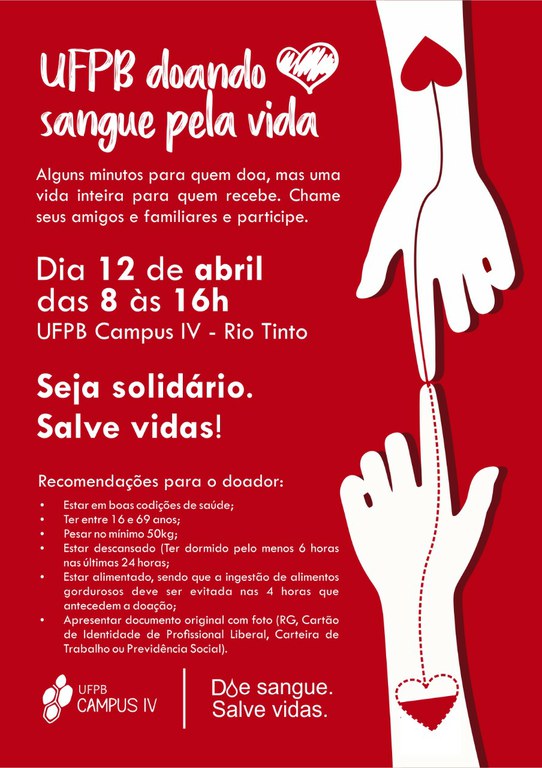 UFPB doando sangue pela vida - Dia 12 de abril das 8 às 16h