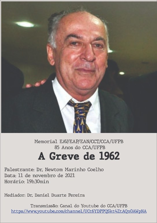 Convite para Palestra: 85 Anos do CCA/UFPB: A Greve de 1962.