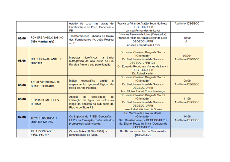 COORDENAÇÃO DOS CURSOS DE GEOGRAFIA