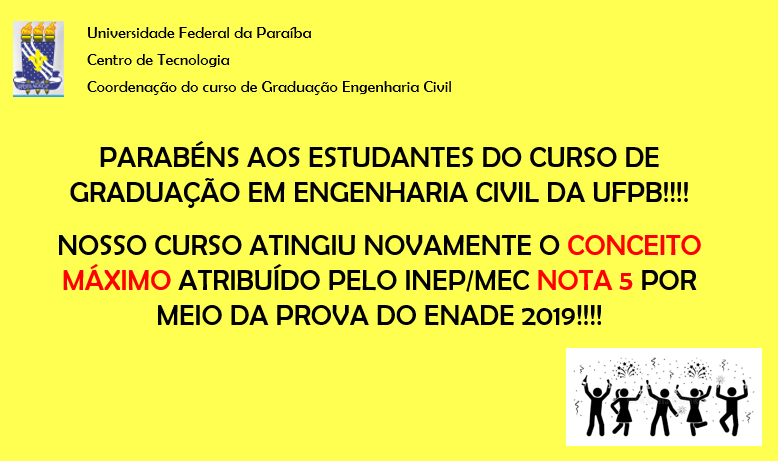 O curso de graduação em engenharia civil da UFPB obtém conceito máximo (5) novamente.