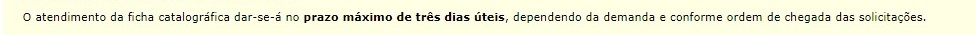 A Biblioteca Setorial exige um prazo de até três dias úteis para emissão da ficha catalográfica (após solicitação no sigaa).
