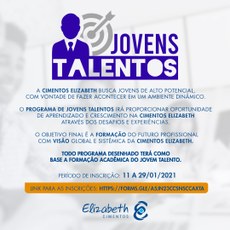 Se você tem os requisitos fundamentais para participar do processo seletivo, inscreva-se e venha tornar-se um Jovem Talento na Cimentos Elizabeth.