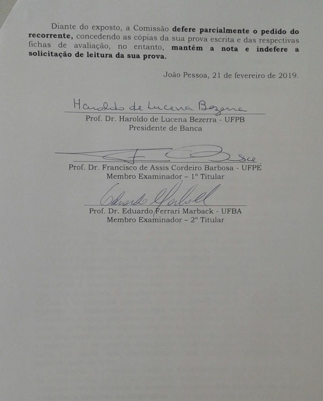 A Banca Examinadora do concurso público par professor efetivo adjunto T-20 do Departamento de Cirurgia do CCM torna pública a resposta a recurso impetrado por candidato.