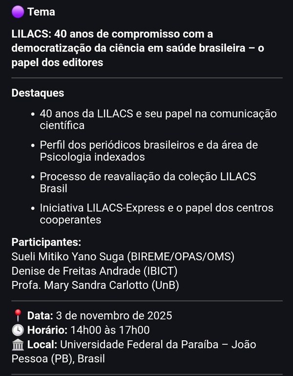 LILACS - ABEC (Meeting 2025): Programação da Reunião