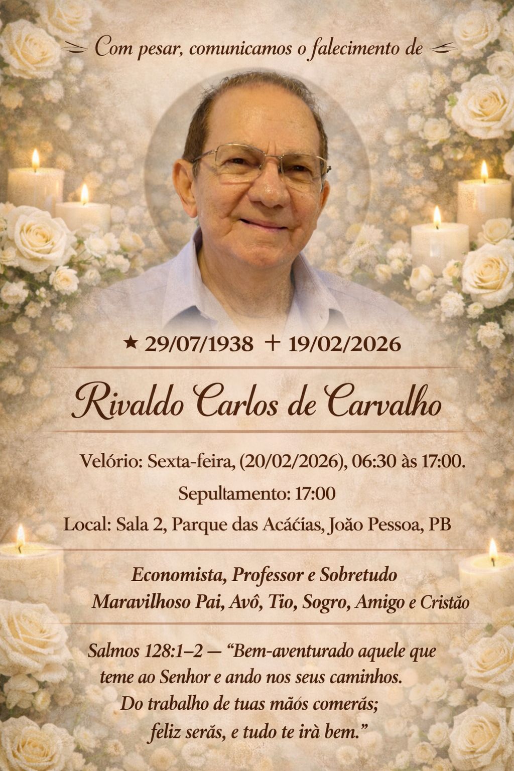 Nota de Pesar: Falecimento do Sr. Rivaldo Carlos de Carvalho