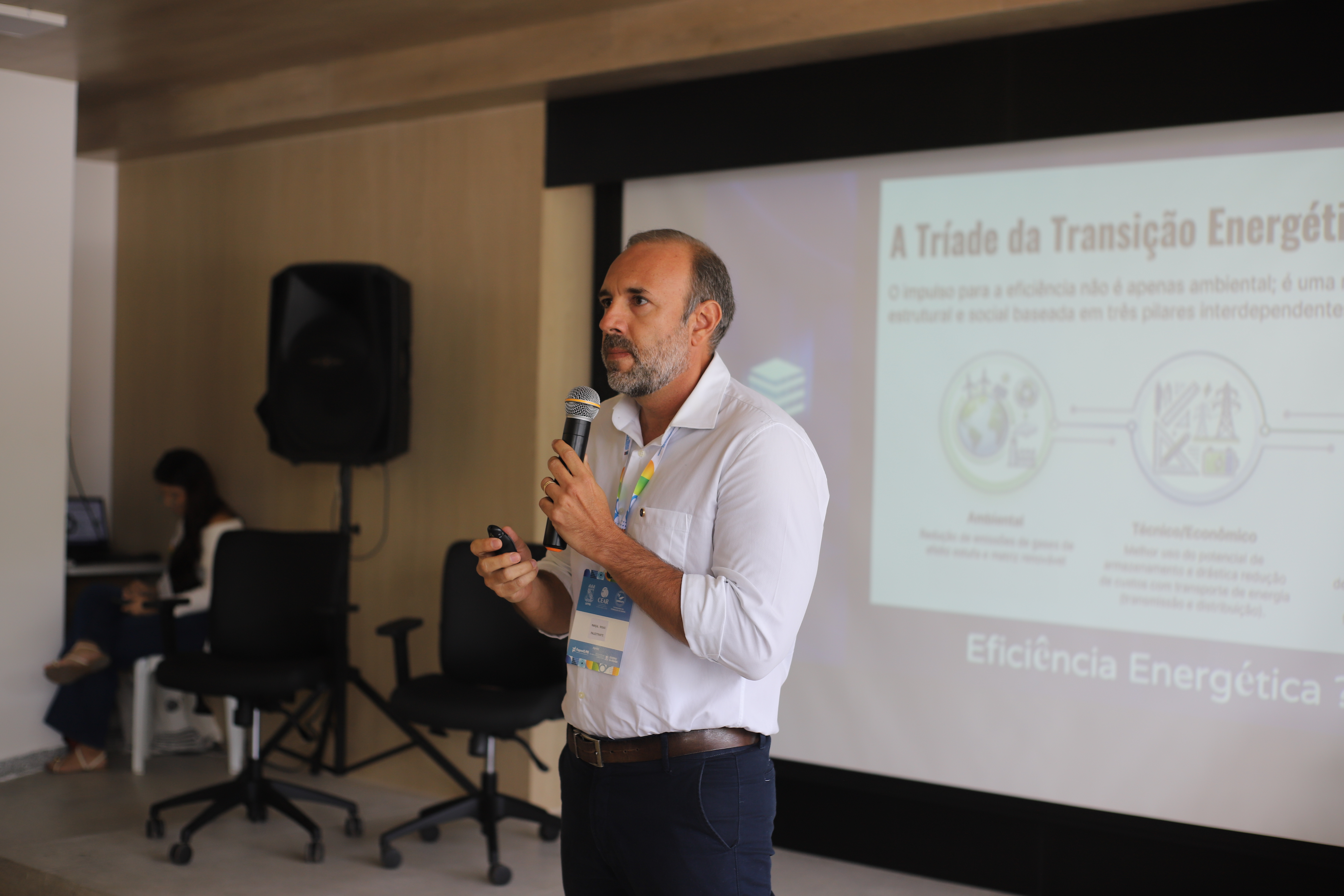 O professor doutor em Engenharia Mecânica do CEAR Marçal Rosas, por sua vez, avalia que o tema eficiência energética ainda é pouco explorado, considerando a sua extrema relevância na atualidade, mas ressaltou as competências do CEAR, que tem atuado de maneira satisfatória, por meio da sua Unidade Embrapii, na captação de recursos para pesquisas. Em sua palestra, o professor apresentou um estudo desenvolvido no CEAR, na área de iluminação natural, e as consequências benéficas do uso dos recursos naturais em favor da eficiência energética.