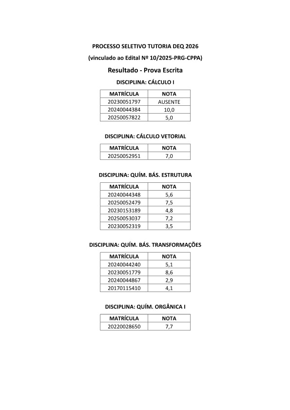 RESULTADO PROVA ESCRITA - TUTORIA DEQ 2026