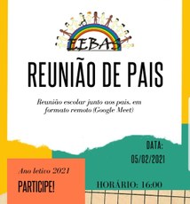 A Coordenação Geral da Escola de Educação Básica convida os pais para participarem da primeira reunião do ano letivo 2021.