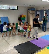 O projeto de extensão "Musicalização Infantil no Colégio de Aplicação", realizado em parceria com o LEMI (Laboratório de Educação Musical Infantil) da UFPB e o NEMI (Núcleo de Estudos em Músicas e Infâncias), é coordenado pelo professor Vinícius Eufrásio do Departamento de Educação Musical (CCTA/UFPB) em colaboração com a professora Renata da Costa Lima (CAp-EBAS/CE/UFPB), o professor José Antônio Nunes (colaborador externo) e os estudantes do curso de licenciatura em Música Sharlyni da Silva, Aliny de Souza, Débora Oliveira e Naomi Soares. O projeto tem como objetivo promover a musicalização infantil com crianças das turmas de três a cinco anos da Educação Infantil do Colégio de Aplicação (CAp-EBAS) da UFPB. O início do projeto aconteceu no dia 7 de outubro em comemoração a semana da criança do CAp-EBAS. As experiências brincantes do projeto estão sendo realizadas às terças-feiras nos turnos da manhã e tarde e devem durar até o mês de dezembro.