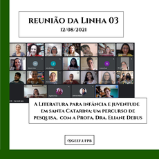 No dia 12 de agosto de 2021, a linha 03 teve a alegria de receber a professora Eliane Debus para conversar sobre a pesquisa realizada por ela, em Santa Cantarina, de autores, ilustradores e tradutores do estado.