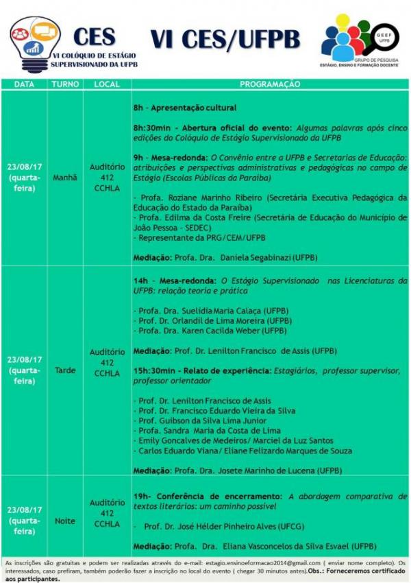 VI COLÓQUIO DE ESTÁGIO SUPERVISIONADO DA UFPB