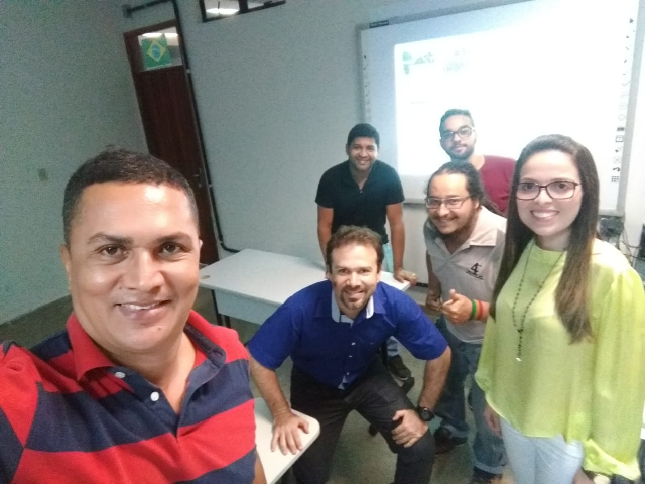 Profa. Elaine Rocha, Diretor Cleverton Fernandes e participantes do mini-curso sobre "Propriedade Intelectual".