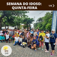 Continuando as celebrações da Semana da Pessoa Idosa, quinta-feira, dia 28 de setembro, às 8h da manhã, foi promovida uma caminhada pela UFPB, com percurso partindo do IPE até o santuário do CCS, e então retornando sentindo SINFRA - IPE. A ação foi acompanhada pela equipe do Instituto, assim como a professora extensionista Sandra Barbosa e o discente Francisco Breno. Também contou com o apoio de uma equipe de discentes do curso de cuidadores de idosos da ETS/UFPB, com a supervisão da Profa. Andrea Mendes. A caminhada interativa foi monitorada também pela equipe da segurança motorizada da UFPB. Quando os participantes chegaram, lhes foi servido um saudável lanche partilhado.
