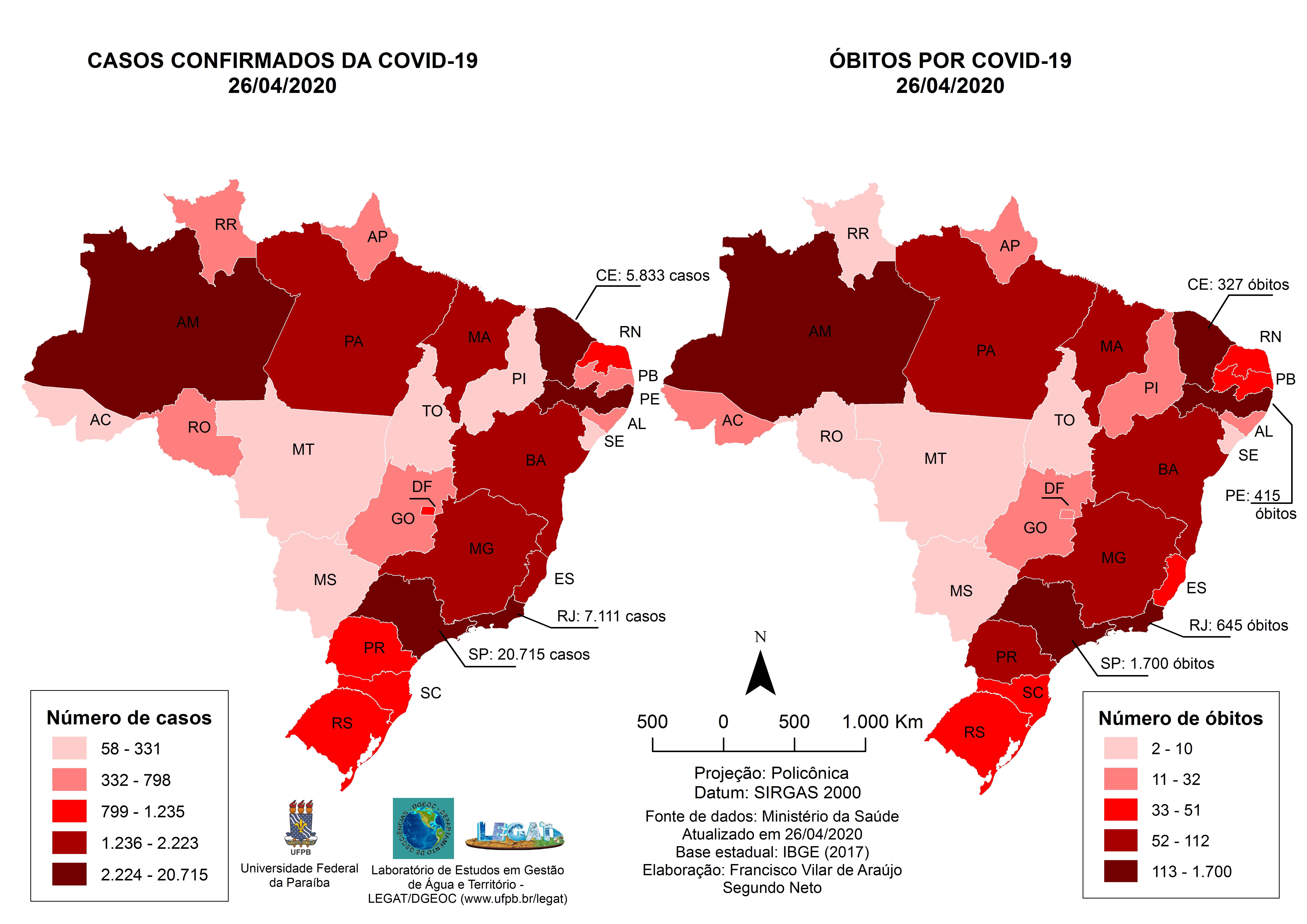 Casos confirmados e óbitos por COVID-19 no Brasil (26/04/2020).