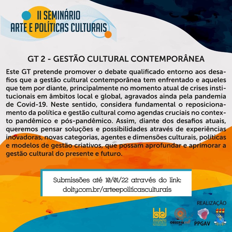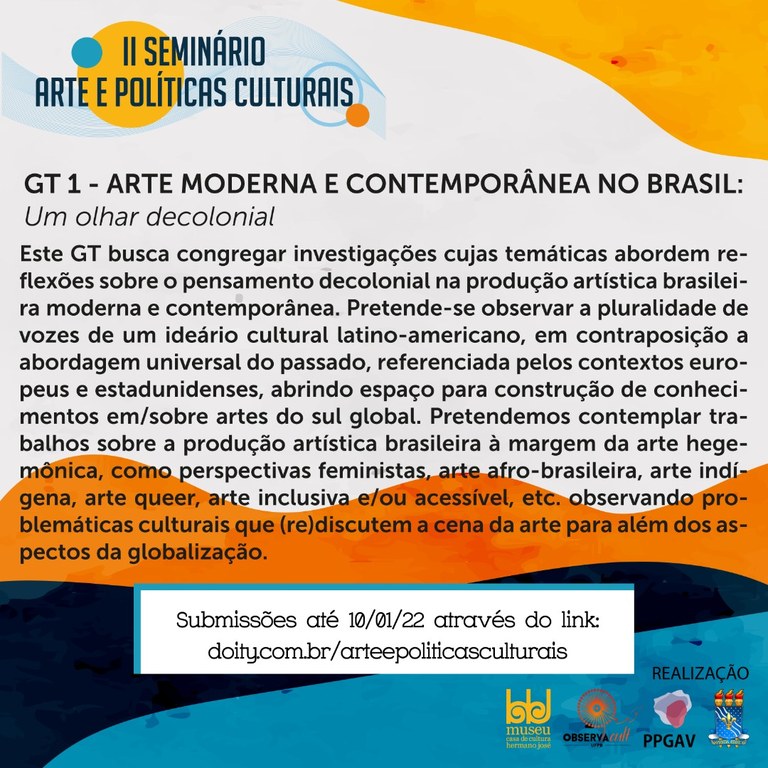 Prorrogadas as submissões para o II Seminário Arte e Políticas Culturais