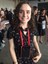 Audiodescrição: Fotografada dos quadris para cima, Luise está de pé e segura a alça da bolsa trespassada. Ela veste um vestido preto com estampas florais discretas e tem uma pulseira de continhas brancas no braço esquerdo. Tem pele branca, é magrinha, de cabelos longos e encaracolados e sorri para a foto. No pescoço repousa o audiofone e o celular, como um colar. Atrás dela, pessoas de pé conversam animadamente.