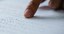 #PraCegoVer: foto em cores aproximada de um dedo indicador lendo página em Braille. Crédito: Eren Li/Pexels.