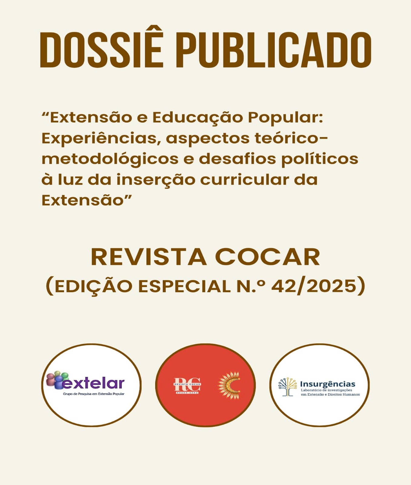 | 24/11/2025 | EXTELAR anuncia a publicação de Dossiê sobre experiências em Extensão e Educação Popular |