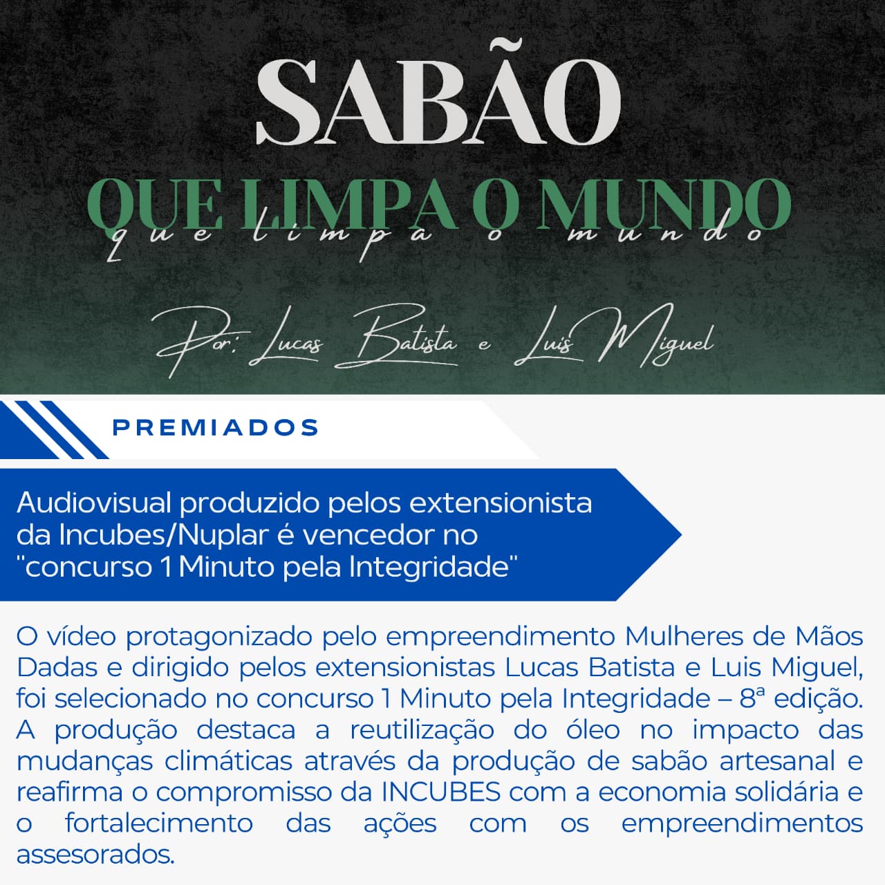 | 28/11/2025 | Vídeo produzido por extensionistas da INCUBES vence concurso “1 Minuto pela Integridade” |