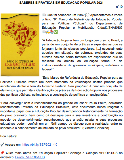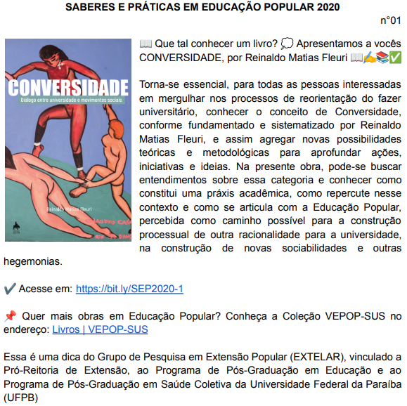 Conjunto de livros com resumos sobre as publicações relacionadas ao tema da Educação Popular (clique na imagem do livro para acessar)