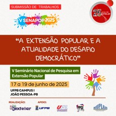 A partir do dia 20/12/2024, terão início as inscrições para o V Seminário Nacional de Pesquisa em Extensão Popular (SENAPOP), a ser realizado na Universidade Federal da Paraíba (UFPB).