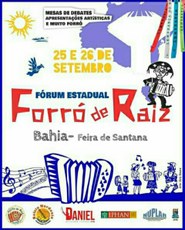 Nos dias 25 e 26 de setembro de 2020 será realizado de forma virtual o Fórum Estadual do Forró de Raiz de Feira de Santana - BA. O encontro terá a participação de artistas, detentores dos conhecimentos das matrizes do forró da cidade e do entorno, membros das comunidades forrozeiras de Feira de Santana e dos municípios próximos, produtores culturais, comunicadores, pesquisadores e gestores de instituições públicas e privadas locais.
