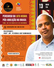 No próximo dia 13 de maio, o Instituto Federal da Paraíba, em parceria com o Comitê de Cultura da Paraíba, promovem a palestra “Percurso da luta negra: pós-abolição no Brasil”, com o Prof. Dr. Petrônio José Domingues, docente da Universidade Federal de Sergipe (UFS) e referência nos estudos sobre relações étnico-raciais, pós-abolição e história da população negra no país.