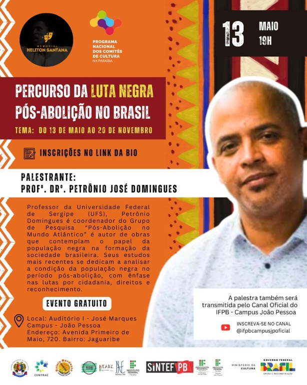 Luta Negra é tema de palestra promovida pelo IFPB e Comitê de Cultura da Paraíba