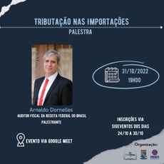 | Tem como palestrante convidado o auditor da Receita Federal do Brasil, Arnaldo Dornelles, que é membro titular do conselho administrativo de recursos fiscais (CARF) e vem contar da sua experiência como auditor a todos aqueles interessados na importações, contadores, economistas, estudantes de ciências contábeis, economia, LEA-NI e público em geral. | |