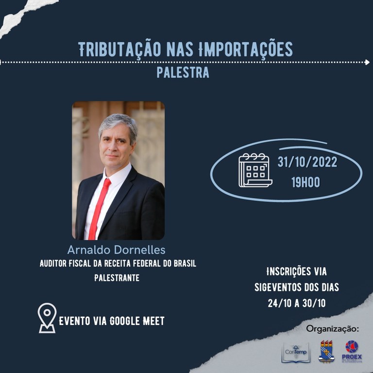Inscrições abertas para palestra com o auditor da Receita Federal do Brasil, Arnaldo Dornelles.
