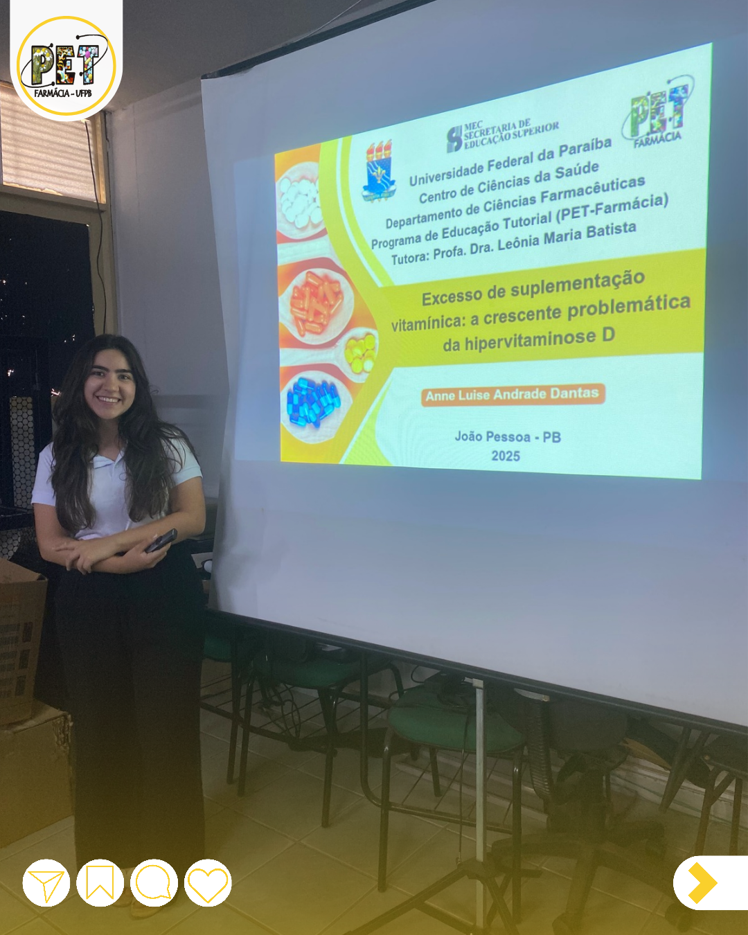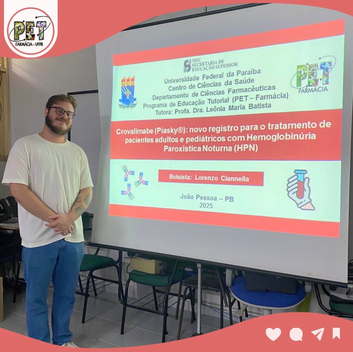Essa é uma atividade realizada semanalmente pelos bolsistas do PET-Farmácia, e consiste na seleção de temas inovadoras no âmbito da Saúde Pública e das Ciências Farmacêuticas. Essa atividade tem como objetivo aprimorar habilidades técnicas e cognitivas, estimulando a comunicação oral, o pensamento crítico e proporcionando um espaço para debates e compreensão do conhecimento científico do bolsista e da comunidade acadêmica.