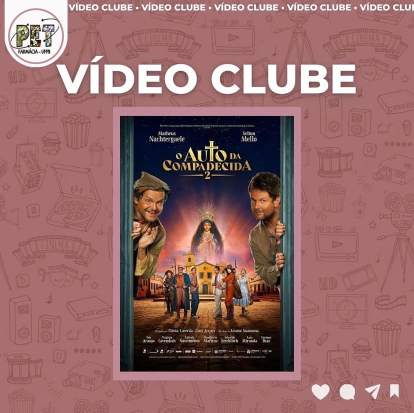 O vídeo clube é uma atividade permanente desenvolvida pelo PET-Farmácia que consiste na exibição quinzenal de filmes/documentários, que abordam diversos temas de grande relevância, de forma a garantir aos participantes uma formação interdisciplinar, o conhecimento de fatos históricos e culturais e a construção e consolidação de valores. Os temas são voltados aos eixos temáticos: arte, drama, economia, educação, meio ambiente, saúde, história e filosofia.