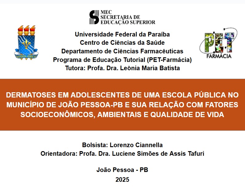 Tema: Dermatoses em adolescentes de uma escola da rede pública de João Pessoa/PB e sua relação com fatores socioeconômicos, ambientais e qualidade de vida.
