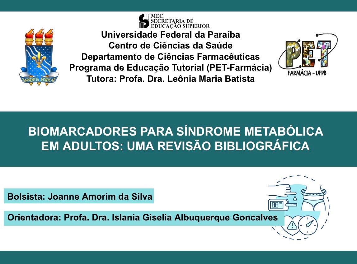 Tema: Biomarcadores para Síndrome Metabólica em adultos: uma revisão bibliográfica.