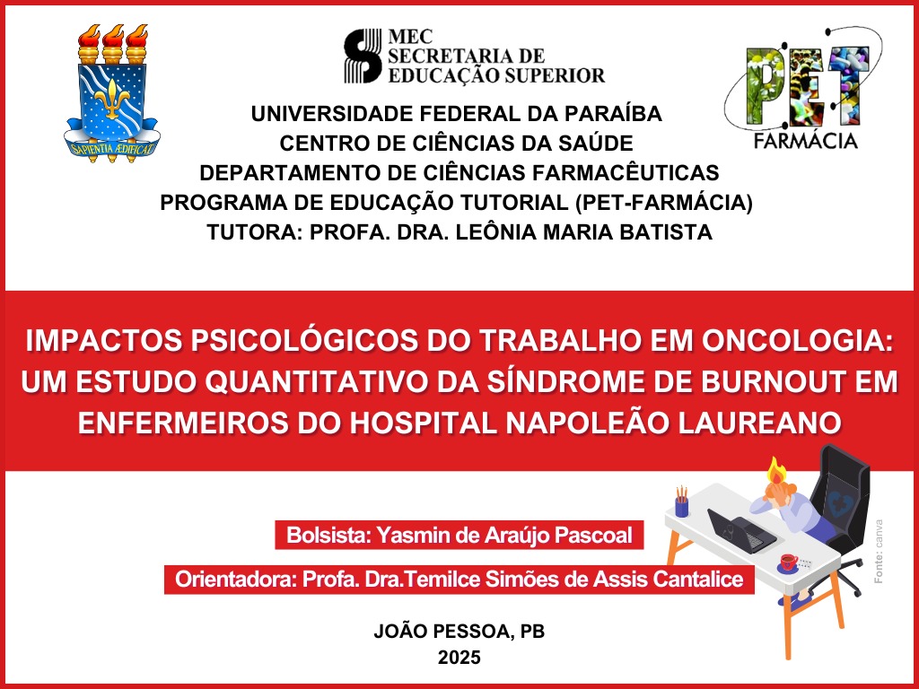 Tema: Impactos psicológicos do trabalho em Oncologia: um estudo quantitativo da Síndrome de Burnout em enfermeiros do Hospital Napoleão Laureano (HNL).