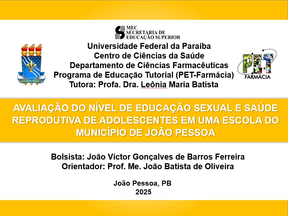Tema: Avaliação do nível de Educação Sexual e Saúde Reprodutiva de adolescentes em uma escola do município de João Pessoa.