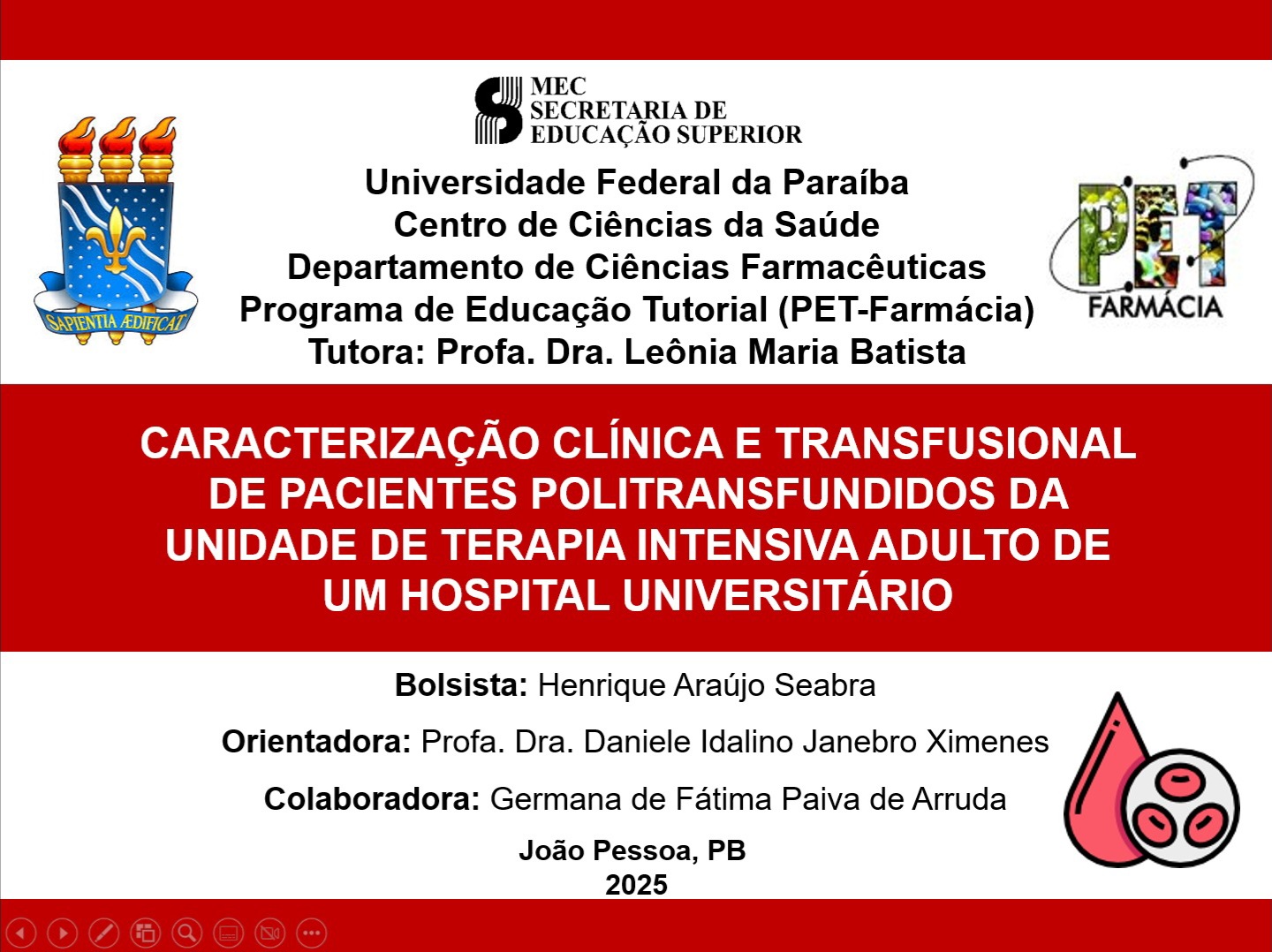 Tema: Perfil clínico e farmacoterapêutico de pacientes com doença renal crônica submetidos a hemodiálise em um centro municipal de Nefrologia de João Pessoa/PB.