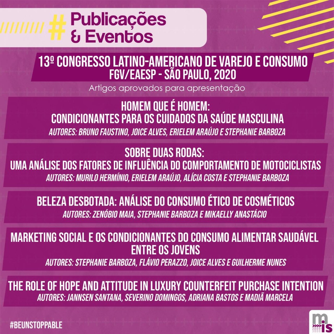 Mestrandos do grupo de Marketing no Interesse Social (MIS), coordenado pela Prof.ª Stephanie, têm artigos aprovados para apresentação no CLAV/2020
