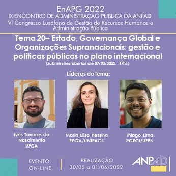 Prof. Thiago Lima, Ives Tavares (UFCA) e Maria Elisa Pessina (UNIFACS) lideram sessão temática no IX Encontro de Administração Pública da ANPAD - EnAPG 2022