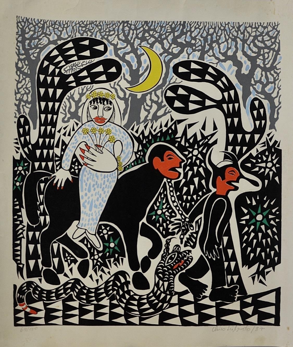 Técnica: xilogravura a cores. Dimensões: 60 cm x 52 cm. 1987. Foto: Mikaely Rocha.