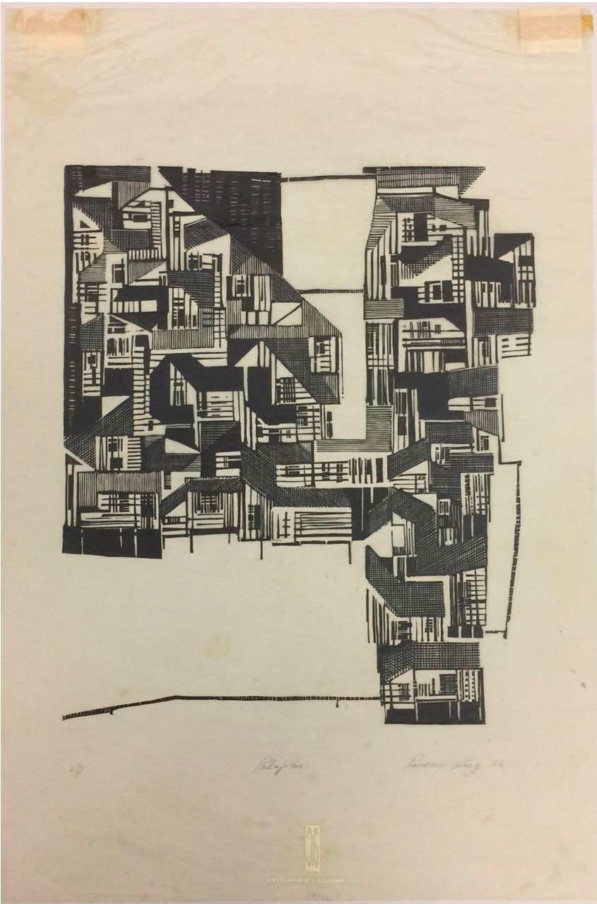 Técnica: linoleogravura. Dimensões: 37 cm x 27 cm. Doação Gabriel Bechara Filho. Foto: Maycon Albuquerque.