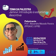 O Programa de Pós-Graduação em Políticas Públicas, Gestão e Avaliação da Educação (PPGAVE) da Universidade Federal da Paraíba (UFPB) promove, no próximo dia 30 de abril, a palestra "Jamovi – Introdução à Estatística Descritiva", ministrada pelo professor Dr. Alexandre Macedo.