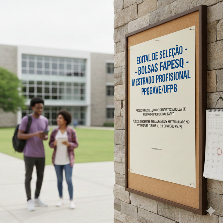 Coordenação do PPGAVE torna público o edital do Processo de Seleção de Candidatos a bolsa de mestrado profissional da FAPESQ. Inscrições via e-mail, nos dias 22 e 23 de janeiro de 2026.