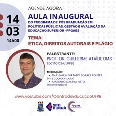 Tema da aula inaugural do Ppgaes: Ética, direitos autorais e plágio. Dia 14/03/2022 às 14h00