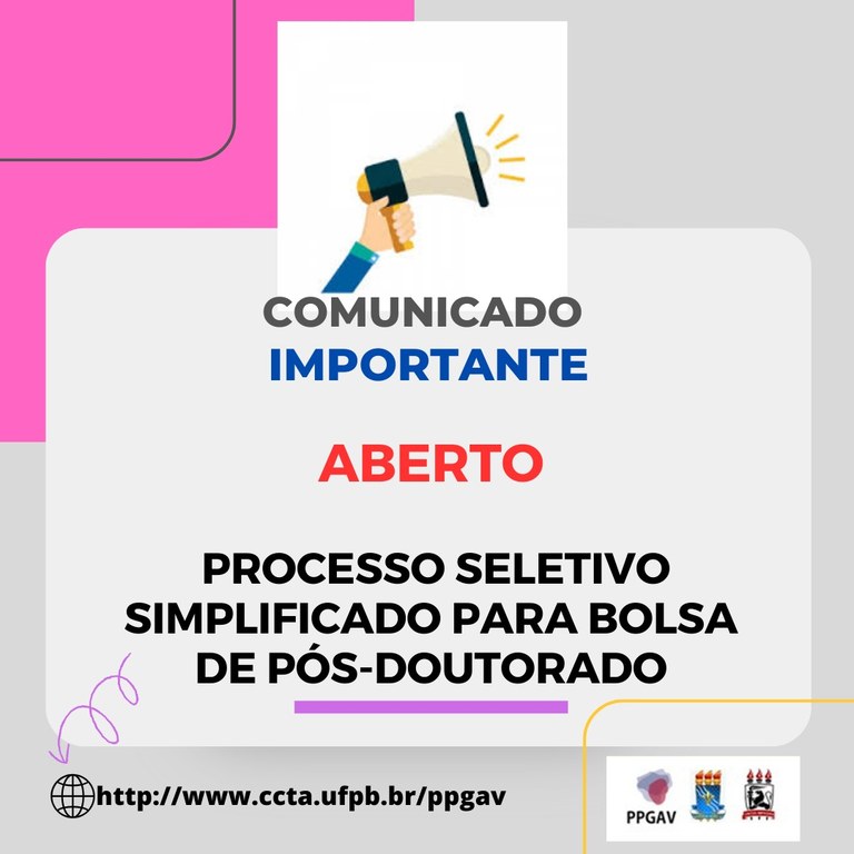 Processo Seletivo Simplificado para 01 vaga de Bolsa de Pós-Doutorado.