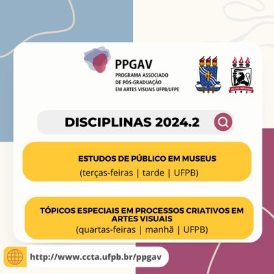 [Prorrogada as Incrições] Matrículas e Oferta de disciplinas do PPGAV 2024.2 (UFPB e UFPE)