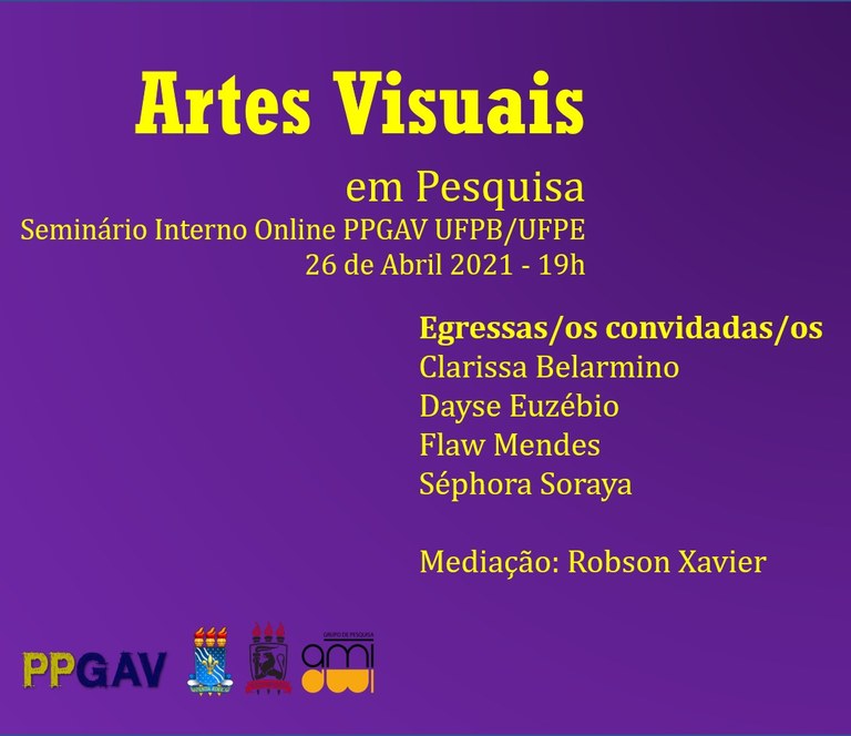 Seminário interno de Pesquisa em/sobre artes visuais - encontro mensal entre egressos/as e discentes do PPGAV UFPB UFPE