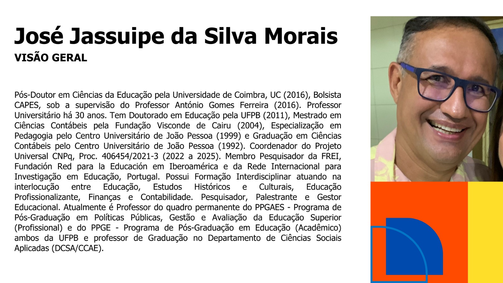 Pós-Doutor em Ciências da Educação pela Universidade de Coimbra (2016) e Pós-Doutor Sênior em Gestão e Inovação pela Universidade Nove de Julho/SP (2025).