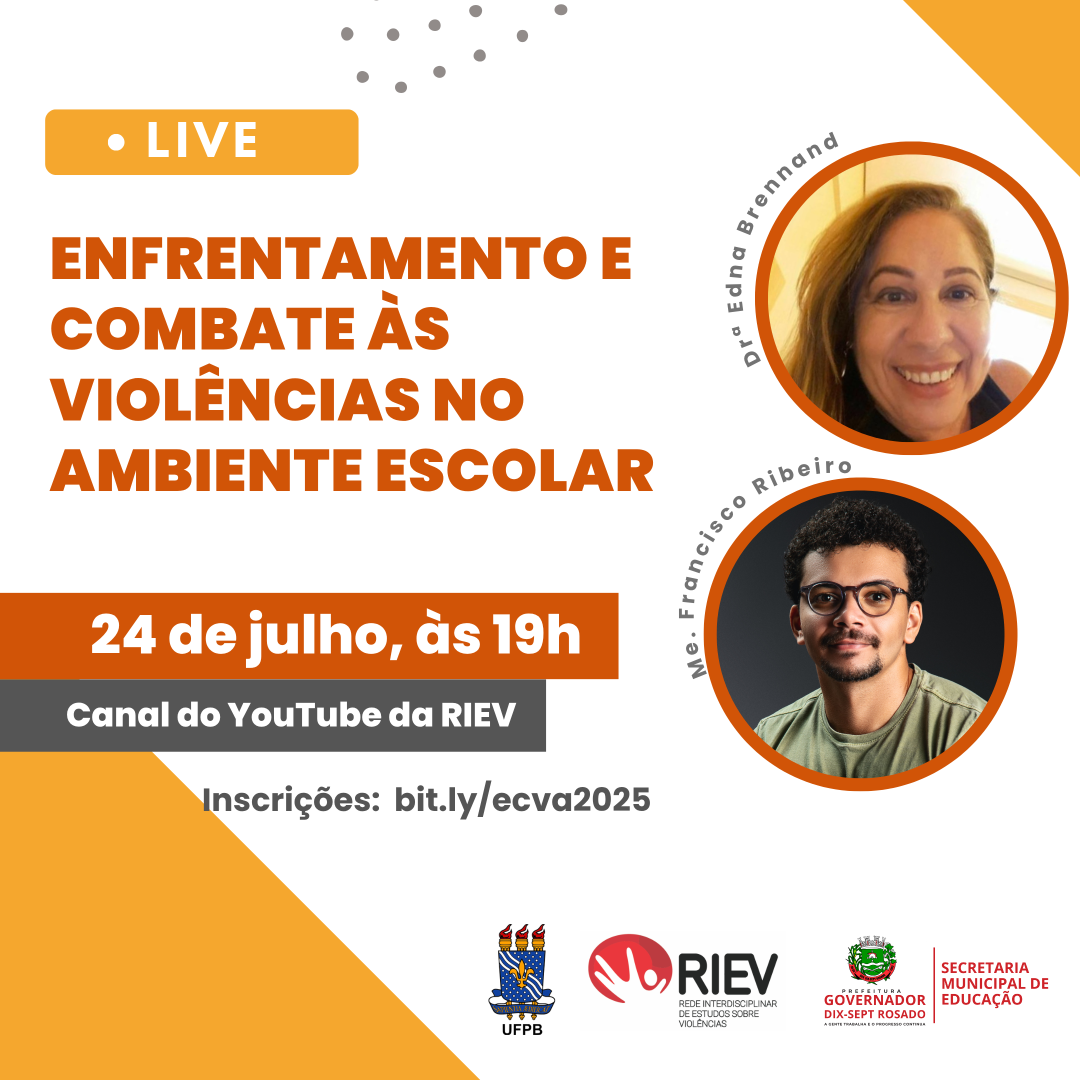 O Programa de Pós-Graduação em Educação informa à comunidade acadêmica e ao público em geral, sobre a realização do evento formativo online "Enfrentamento e Combate às Violências no Ambiente Escolar", a ser realizado no dia 24 de julho de 2025, às 19 h, através do canal da RIEV no YouTube.