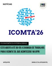 Está aberta até 09/05 a chamada de trabalhos para o ICOMTA’26, que acontecerá na UFPB